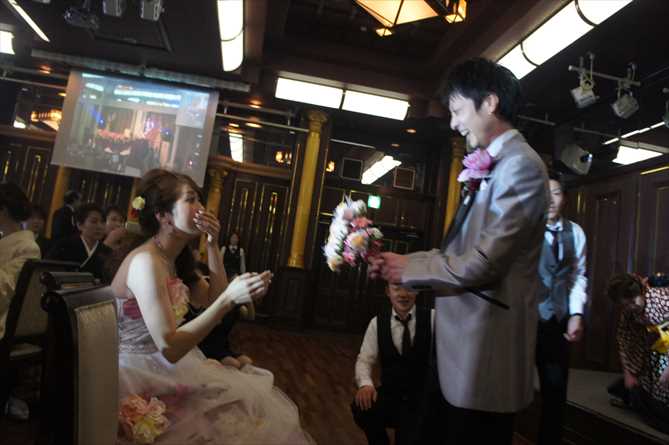 友人の盛大な余興「妖怪体操第一!スタート」最後は新郎から新婦へハグ❤友人の思惑通り。。。。。