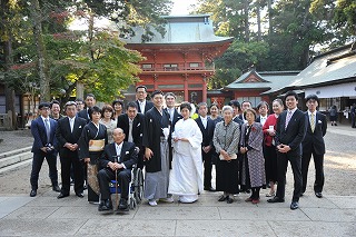 ハッピーウエディング!ご結婚おめでとうございます!今回のカップルもとても素敵な鹿島神宮挙式を行いました。最高の天気に恵まれ、たくさんのご親戚にご祝福されながらの挙式です。