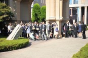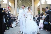 ウェディングゲートでご親族からご友人までたくさんの人に見送られ