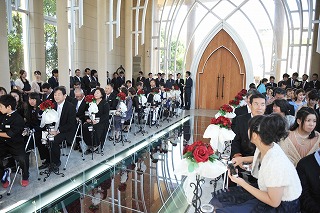 ご両親へ花束を贈呈し挨拶の言葉をしご両家様で退場…