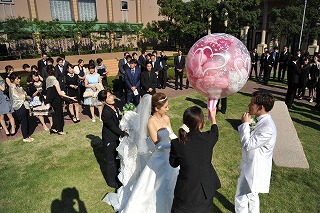 式が終わりフラワーシャワーやサプライズ!スパークバルーンを行いました!