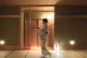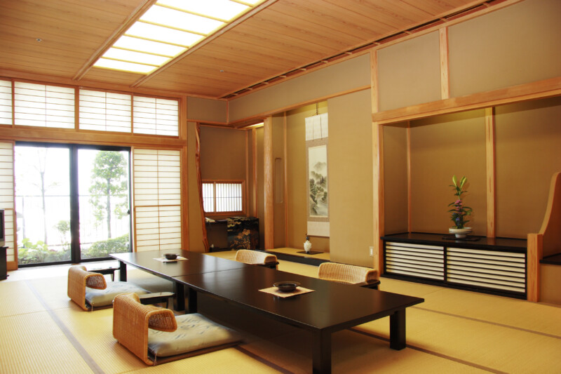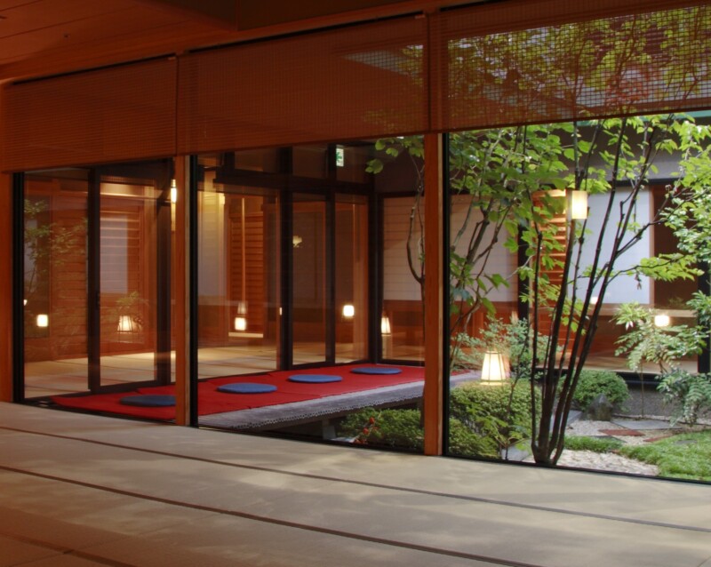 茶寮砂の栖は80㎡~103㎡のゆったりとしたお部屋は全部でたったの10室。エレベーターを降りると畳の香りが広がり、中庭の日本庭園では四季折々の景色を楽しめる「茨城の奥座敷」のような落ち着いた空間です。